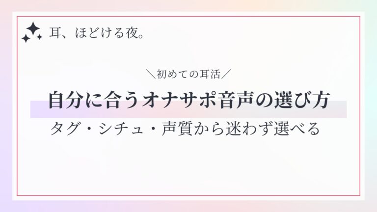 【初心者必見】ASMR音声とは?女性向けオナサポの世界をやさしく解説 「ASMRって気になるけど難しそう…」そんな初心者さん向けに、ASMR音声の魅力や聴き方をわかりやすくまとめました。癒し寄りも、オナサポ寄りも、どちらも安心して楽しめる入門ガイドで […]
